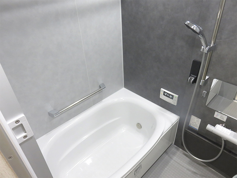 システムバスの壁は艶消しを選び、おしゃなれな空間になりました。