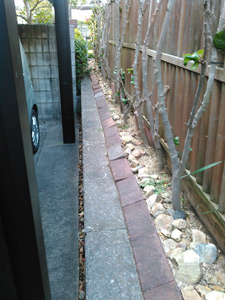 今まで山茶花の手入れが大変で、近隣宅への土の流れ込み・通行人の視線が気になっていらしたとのことで、土留めのブロック積とフェンスを設置しました。