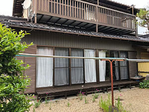 和風なお家に洋風のテラス屋根をつける工事でしたので、お家全体の色味にあわせてテラス本体の色・寸法を考慮した商品を選定しました。