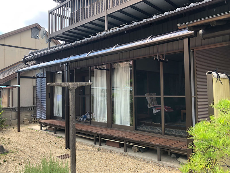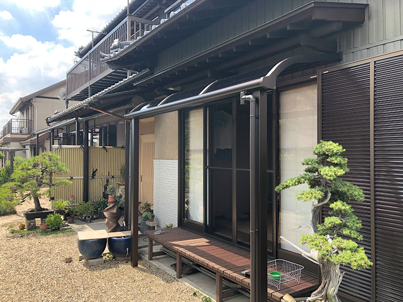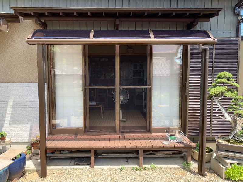 和風の外観のお住まいとテラス屋根をマッチさせるために、現場での採寸と色合いに気を付けてご提案致しました。