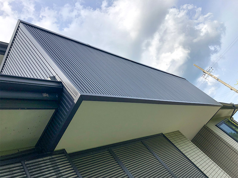 ベランダ壁面(角波板金):日鉄鋼板 ニスクカラー 他:防水工事、釘打ち |