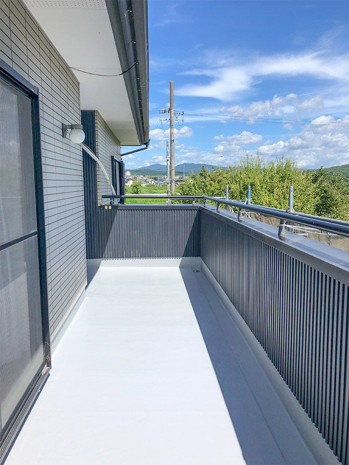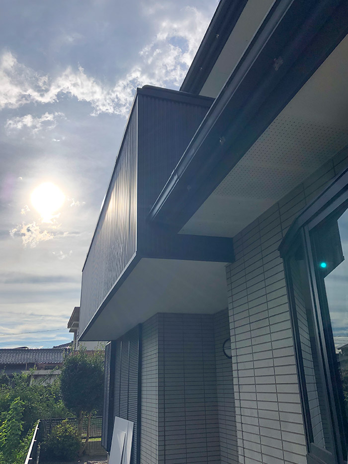 ベランダ外壁の材質を、窯業系サイディングと板金施工の2つのプランをご提案しました。見た目や耐候性等をご説明し、板金施工プランをご採用頂きました。