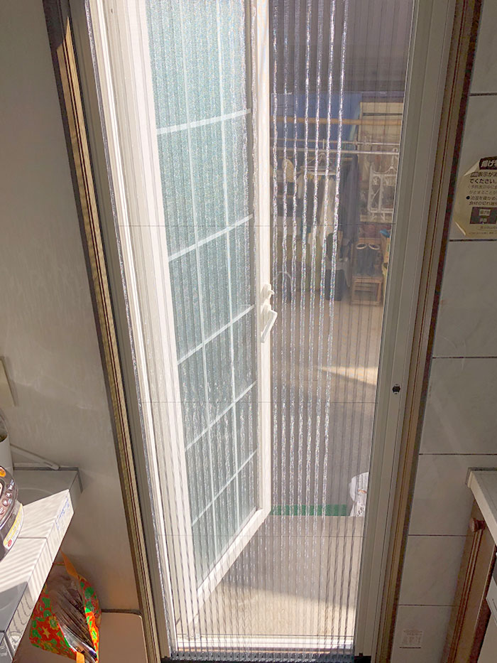 台所のスクロール式網戸が外れてしまうので取替えたい。