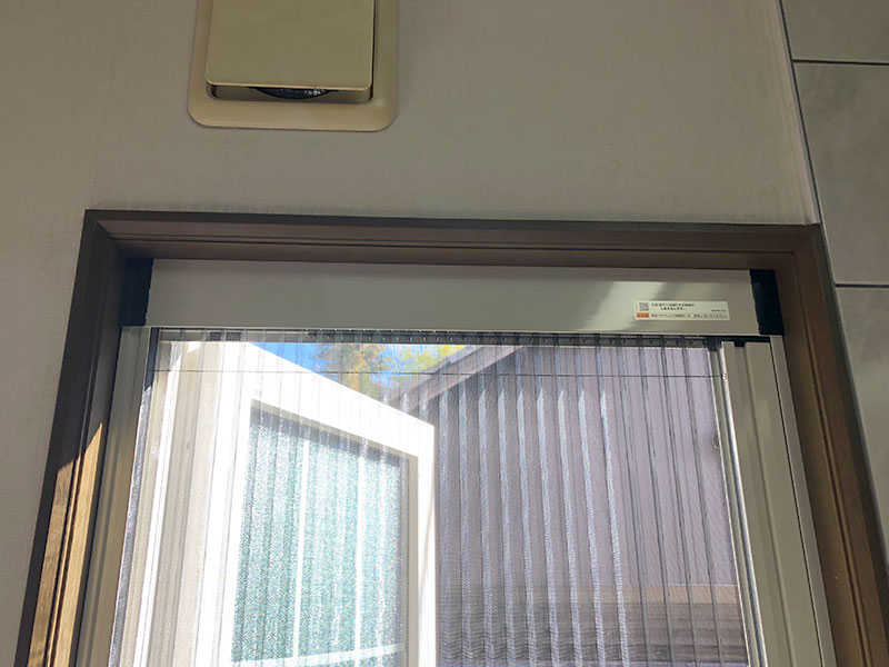 既設は上げ下げ式の網戸でしたが、同じ仕様の商品がなかったため、網戸を使わない時は折りたたんですっきり収納できる「しまえるんですα」をご提案しました。