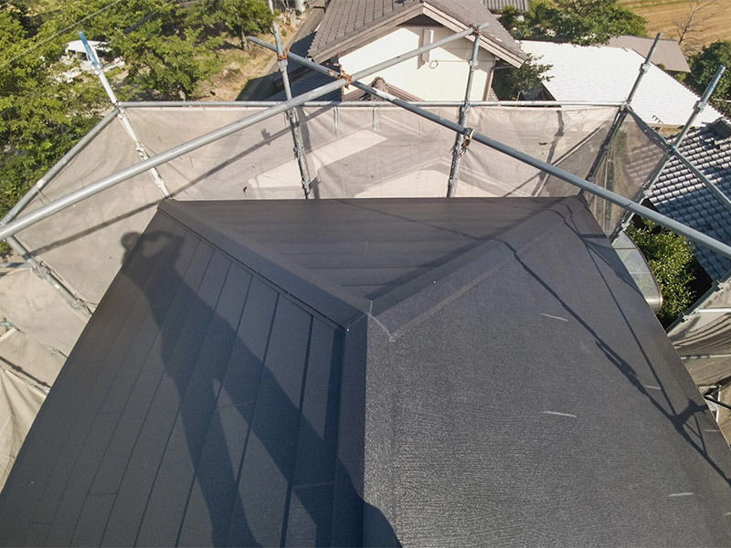 屋根材には断熱性能を兼ね備えたアイジー工業のスーパーガルテクトをご提案しました。