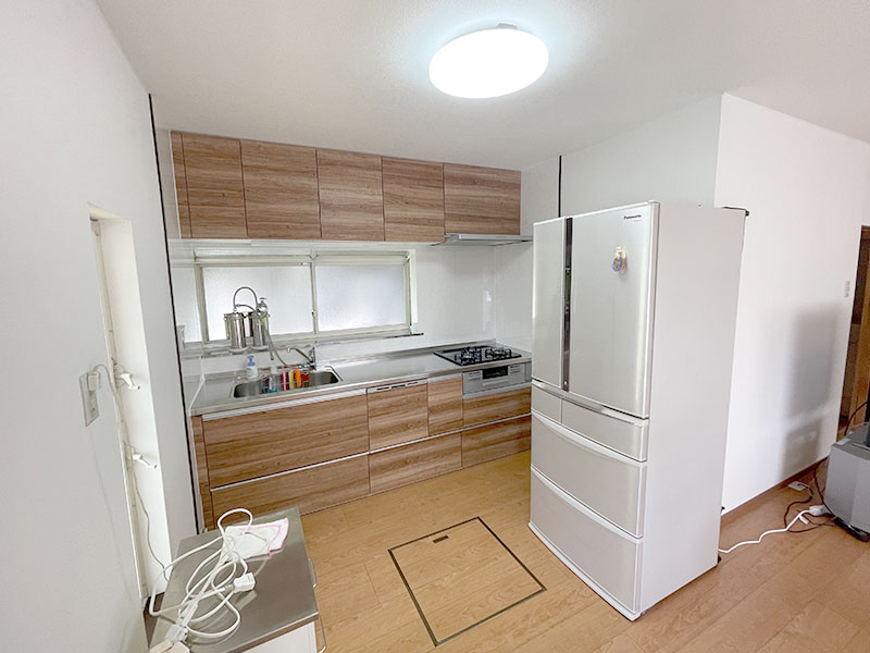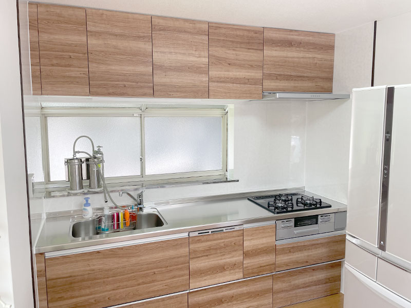 当初はキッチンのみのお見積りでしたが、同時に壁紙とフローリングの貼替を行ったほうがきれいに仕上がるとご提案させて頂きました。
