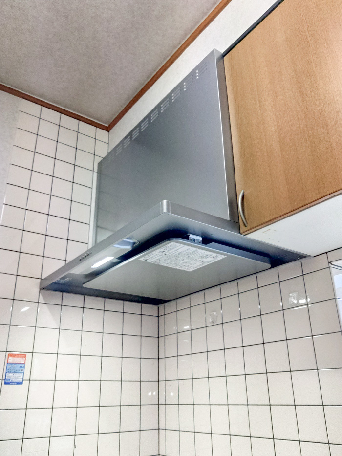 今まではフードとプロペラファンだけのシンプルなレンジフードでしたが、今回は照明もついているのでコンロの手元が見やすくなって使い勝手が良くなったと思います。