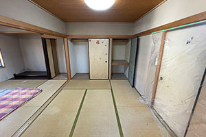 今回は和室から洋室リフォームで、間仕切り壁と縁側を解体し1つの空間にしました。